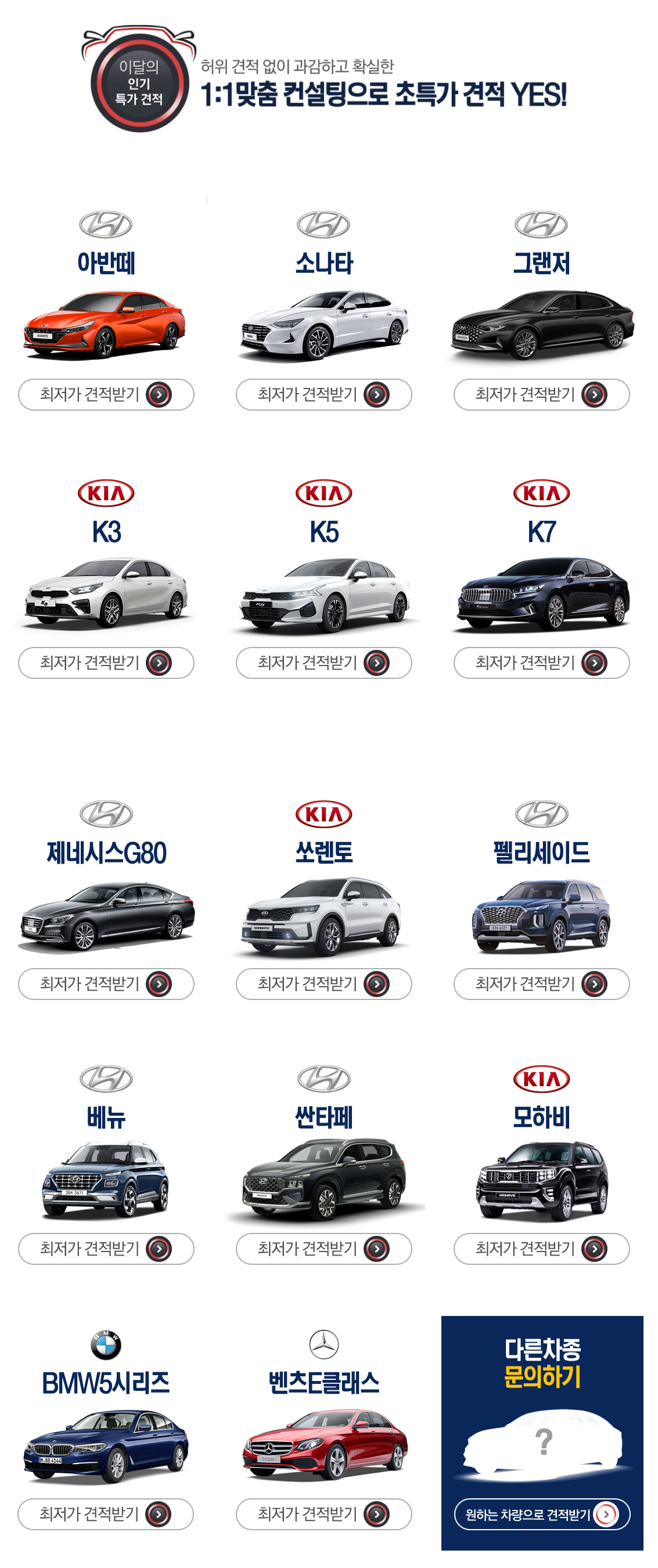 일반적으로 직접 발품을 팔아서 알아보러 다닌다면 사실 시간을 길게 잡아봐야 몇 군데 수준이라서 그 내에서 그나마 비용이 싼 것을 선택하게 되지만 이런 가격비교 사이트를 통해서 알아보면 21군데 장기렌터카 업체들의 비용을 견적 받아 볼 수가 있어서 신청하는 입장에서는 조금이라도 더 유리하게 월 납입료 저렴한 곳을 찾아볼 수 있는 장점이 있습니다.